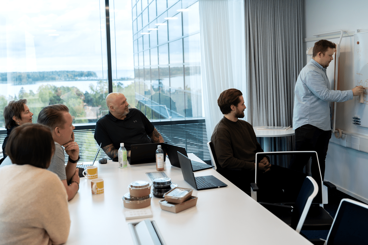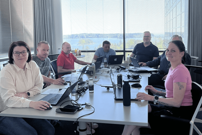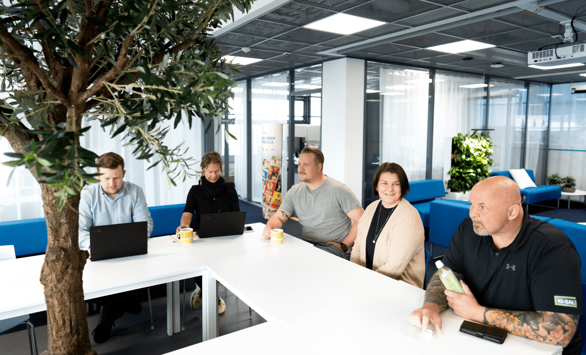 Meillä on loistava työporukka, joka jakautuu eri puolille Suomea myyntikentälle sekä Espoon toimistolle. Meillä luotetaan siihen, että jokainen hoitaa oman tonttinsa ja yhteistyö sujuu saumattomasti. Yhteinen tekemisemme on täynnä naurua ja energiaa. Ilo ja ylpeys omasta ja toisten työstä näkyy päivittäin arjessamme. Meillä ei pönötetä, vaan päivät ovat täynnä huumoria, kannustusta ja hyväntuulista haastamista. Vaikka joka päivä ei voi olla juhlaa, niin aina puhalletaan yhteen hiileen.